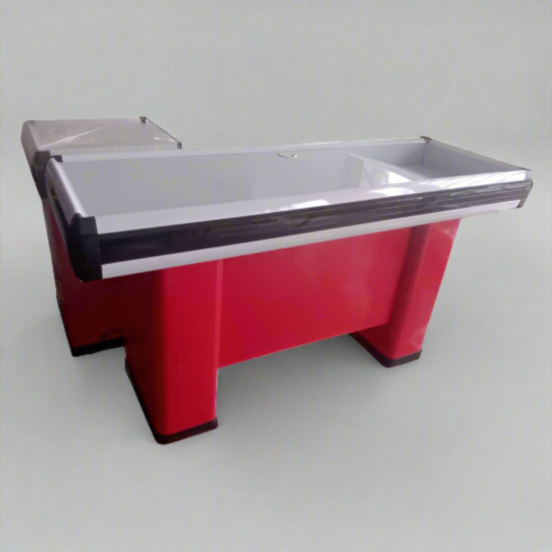1.5-Meter Reception Desk with Side ExtensionThis 1.5-meter reception desk with side extension is designed to provide a clean, functional, and professional workspace in any front-facing environment. Featuring a striking red base with a smooth silver tableto