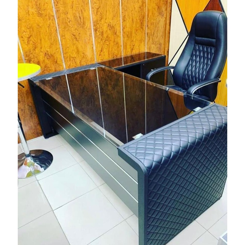 This 1.6 Metre office desk is suitable for senior staff . Looks executive on a budget.Glass top ,Pleated leather .