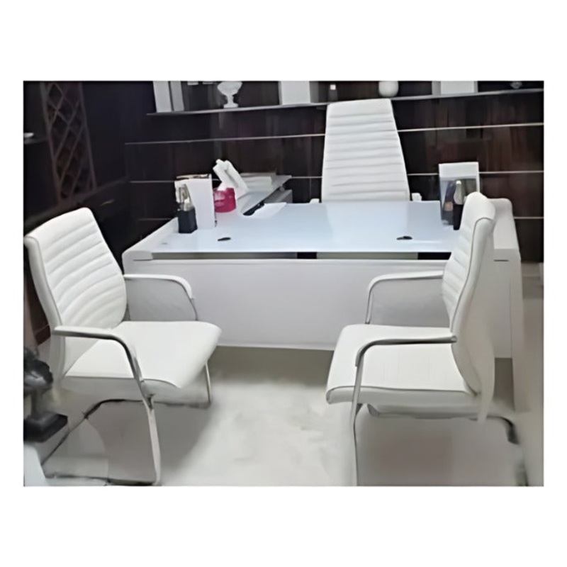 1.6Mtr White Glass Office Desk + Leather chairs-909A