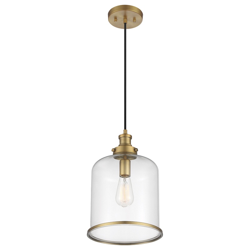 Looking for vintage-inspired lighting style? Look no further than this 1-light pendant! It flaunts a clear glass shade with natural brass detailing that goes perfectly with the black hanging cord. This pendant would look great flying solo or as part of a grouping. 15″ height, 10.25″ width. Max height 135″. Max 60 watt bulb, standard size A19 bulb recommended. LED bulb compatible. Supplied with 120″ of cord.