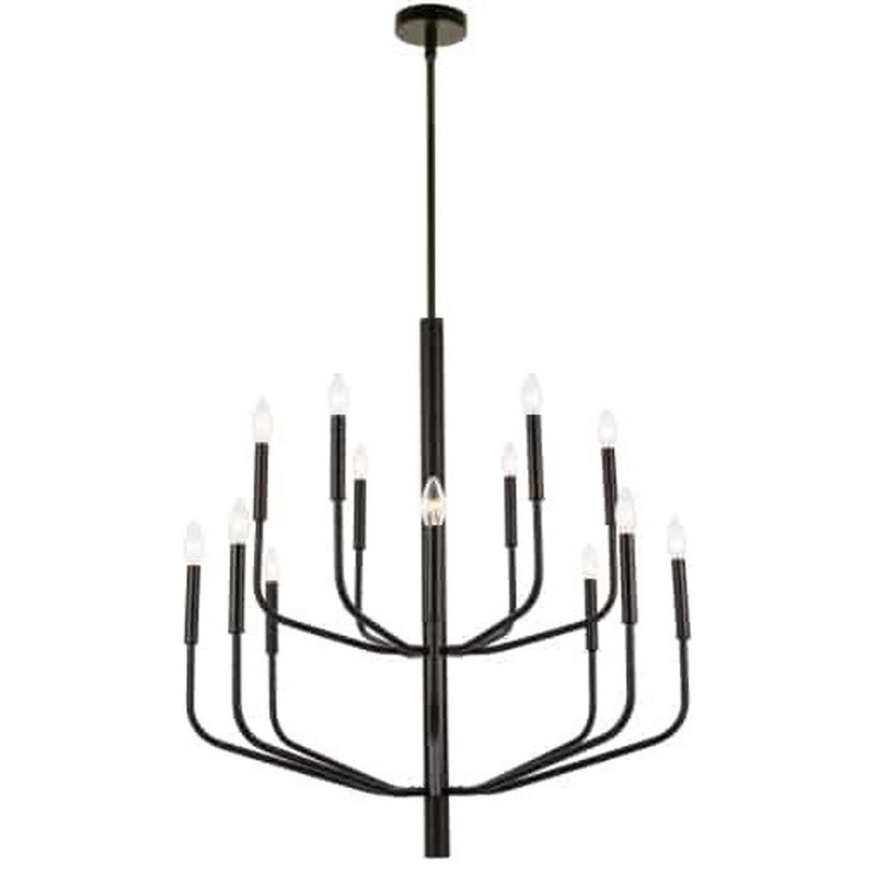 -Dainolite Contemporary Eleanor Chandelier in Painted Black Metal for the Ceiling with 14 bulb, E12 socket base 60W Watts max