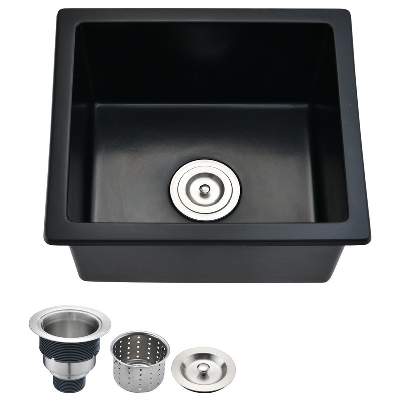 18″ x 16″ Quartz Single Bowl Undermount Kitchen Sink With Basket Strainer – Contemporary – Kitchen Sinks – by AquaView Inc