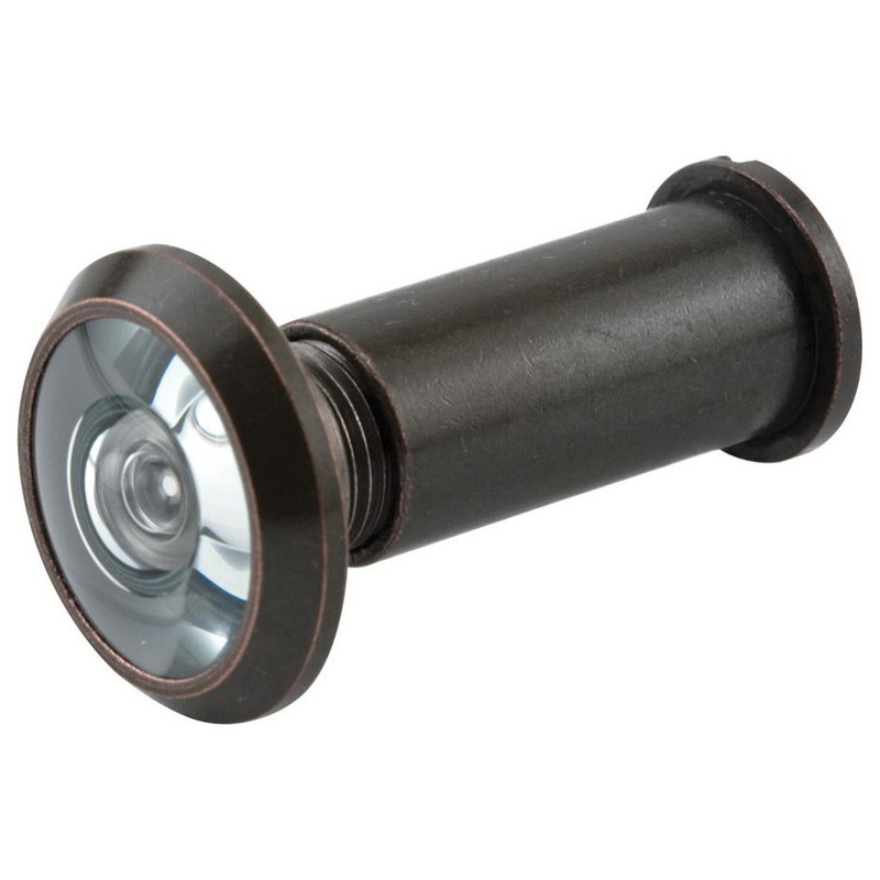 This U.L. lListed door viewer is constructed of a solid brass housing, and it comes in a classic bronze finish. The lens of this viewer is made of glass and it features a 180 degree angle of view. Viewer can be installed on doors from 1-3/8 in. thick to 2-1/8 in. thick, with a required 9/16 in. diameter hole for installation of viewer. Door viewer is designed to help keep you safe when answering your door and is ideal for day or night viewing with adequate exterior lighting. Easy to install and it is used by many. Inside viewer covers (not included with this item) prevent reversed visibility through door viewers from the exterior of the home, increasing the security and privacy of your home.