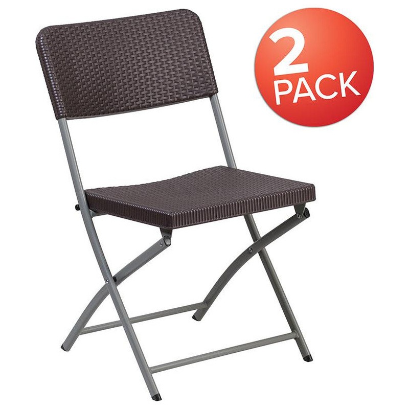 Add some pizzazz to your residential or commercial space with this stylish folding chair. This plastic chair has a woven rattan design throughout that offers an appealing look and is suitable for indoor or outdoor use. The durable steel tubular frame, double support braces and textured seat ensure safety while seated and make this an ideal event chair. Protective floor caps prevent your flooring from being marred when the chairs are moved. These chairs are portable and fold to transport and store.