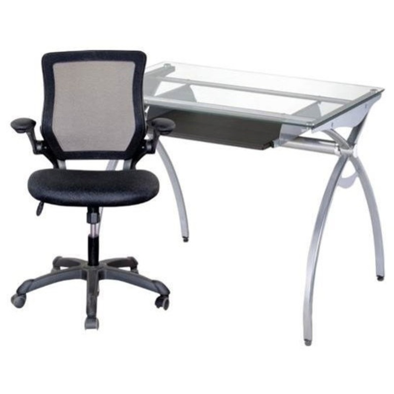 Included Items: -Mesh Task Office Chair in Black x 1 -Glass Top Metal Computer Desk x 1 -For quicker processing, your order could be split into separate packages. -Glass Top Metal Computer DeskThe modern style of the Home Square brings a crisp and smart am