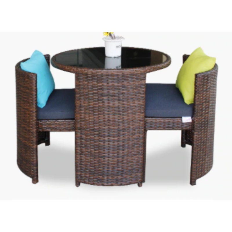 This Rattan Bistro Set is fantastic for small areas and when it is not in use, it stores away into a compact cube’esk design which makes it easier to use the area when you are noting dining at the set.