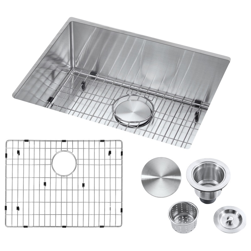 -Easy to Install: Set includes Sink, Drain Assembly with Strainer, Protective Bottom Grid; Standard 3.5″ drain opening will fit any garbage disposal unit; Professional instruction manual and video will help you solve all installation problems in time.