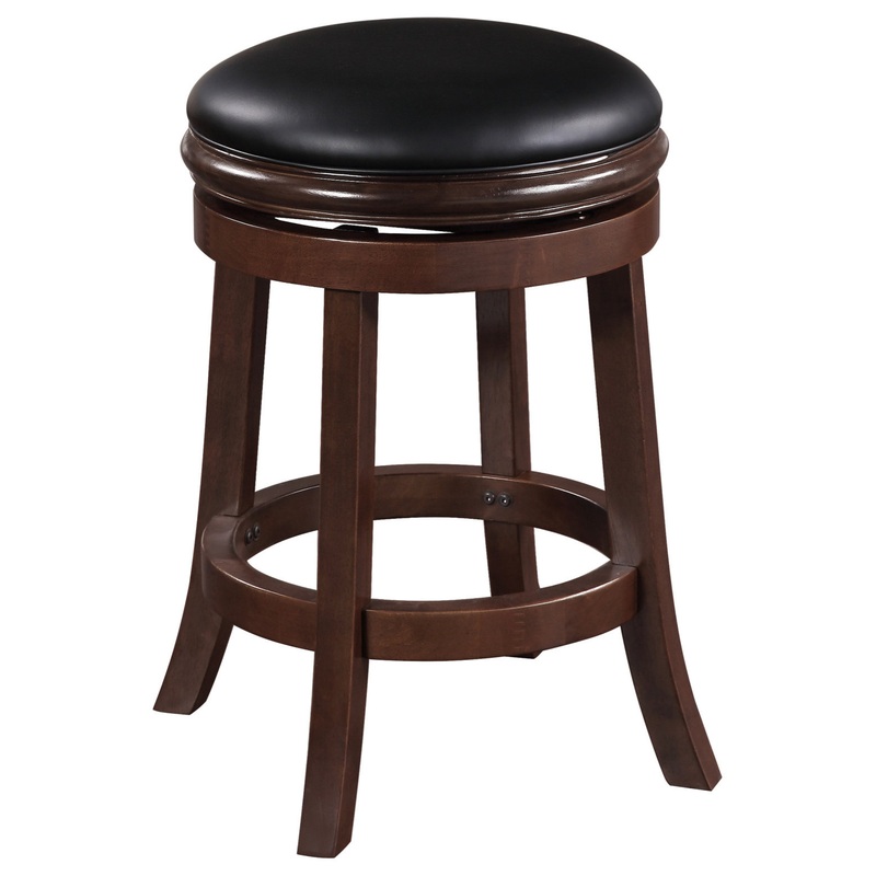 TThe Boraam Backless Stool is the functional accent youve been looking for to complement your home bar, eat-in kitchen, or bistro table. A ball-bearing swivel plate provides a versatile 360-degree swivel youll love, while the double-seat apron and stability stretchers offer durability and support. The frame is made from solid rubberwood while the cushion is padded out with high-density foam. Flared legs and single welt cord trim add handsome style to the stool. This backless stool is available in counter and bar height options. The Boraam Backless Stool also comes in two different finishes just pick your favorite!