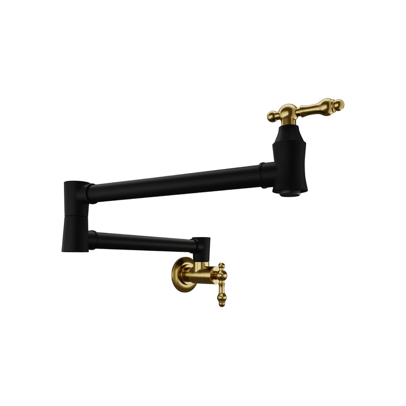 24″ Wall Mounted Pot Filler With Dual Swivel, Matte Black and Brushed Gold – Traditional – Pot Fillers – by SpaWorld Corp