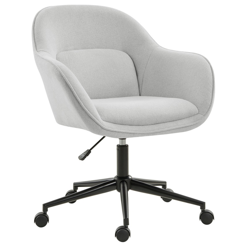 The sleek and modern office chair is designed to provide both comfort and functionality. The durable metal base is equipped with smooth-rolling casters for effortless movement across various floor types. The chair’s seat can swivel, allowing for easy maneuverability. The height of the office chair is adjustable, enabling you to customize the seat height to your preferred level for comfort and support. It also boasts a unique and stylish backrest featuring a gracefully curved contour, providing support to your spine and promoting good posture. Whether you’re working at a desk or in a conference room, its modern aesthetics make it an addition to any workspace, enhancing both the look and functionality of the office.