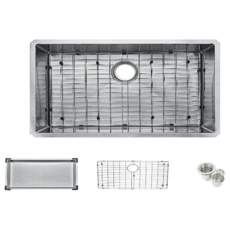 Starstar Undermount stainless steel sinks combine fashion with function to create a contemporary look for the kitchen. Handcrafted from premium 16 gauge 304 stainless steel for maximum durability, the extra-deep basins accommodate large dishes with ease. The four corners are creative more convenience to clean the dirt. The clean lines and apron front design complement any dcor, from traditional to transitional to modern. All starstar kitchen sinks are equipped with top-level soundproofing, including thick rubber dampening pads. Each sink is additionally treated with protective pads to reduced the dampens sound. The corrosion-resistant surface is further protected from rust and oxidation by a meticulous finishing process. This stylish single bowl sink provides a lifetime of functionality. For added convenience, a colander, a grid, a basket strainer drain included free with purchase. For easy installation, all mounting hardware is provided. Experience Starstar High Quality and bring your kitchen bright to life.
