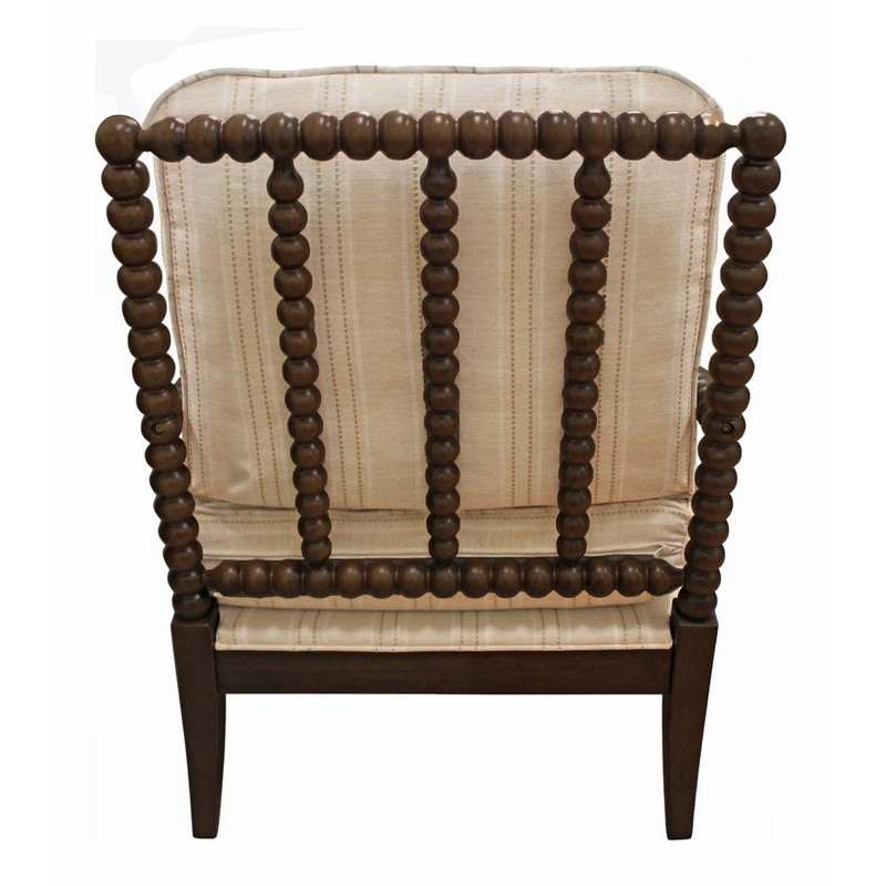 This elegant armchair showcases piped detailing and a spindle-style frame for a look that complements any modern or boho living room. Its deep-seated design is built from solid wood with a rustic brown finish. This chair is topped with a thick back and sea