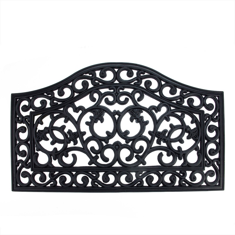 Compliment your entryway with this door mat which features an enchanting scroll pattern Color(s): black Non-skid durable backing which helps to keep your door mat securely in place For indoor or outdoor use Care instructions: rinse with hose and air dry Di