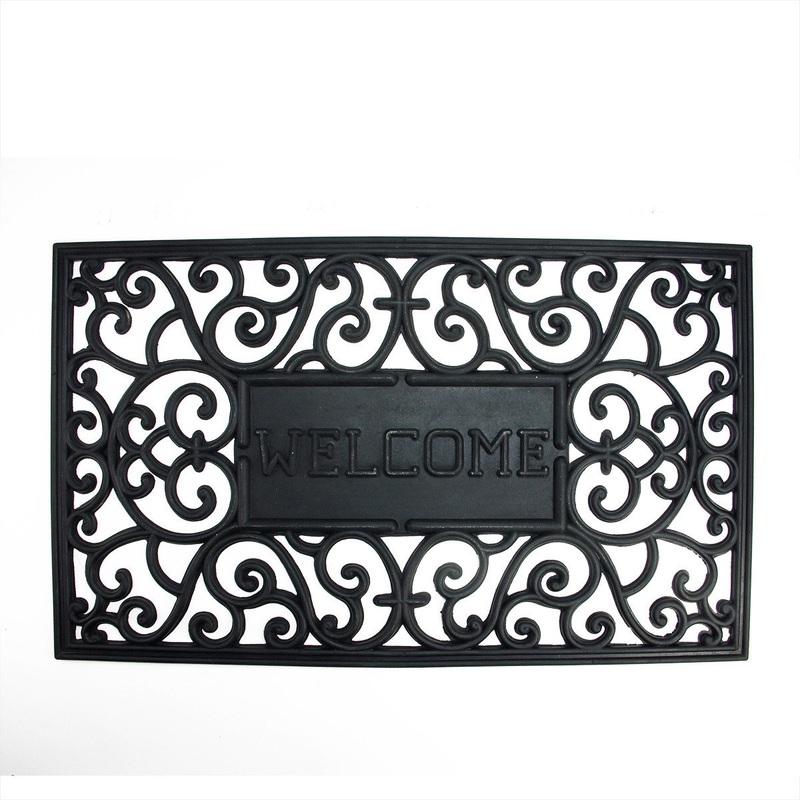 Compliment your entryway with this beautiful "Welcome" door mat! Color(s): black Non-skid durable backing which helps to keep your door mat securely in place For indoor or outdoor use Care instructions: rinse with hose and air dry Dimensions: 17.75"H x 29.