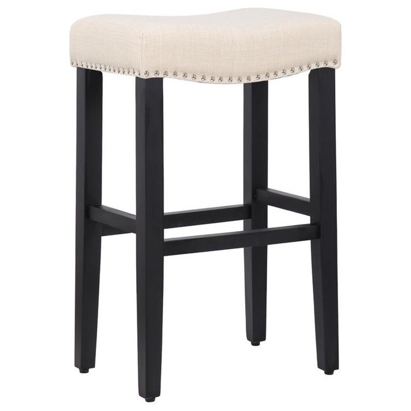 Give your kitchen a stylish update with these attractive barstools. With solid rubberwood legs and seat frame, the stool is sturdy for safe and reliable sitting. The upholstered seat with silver nail head trim makes it an eye-pleasing piece to liven up you