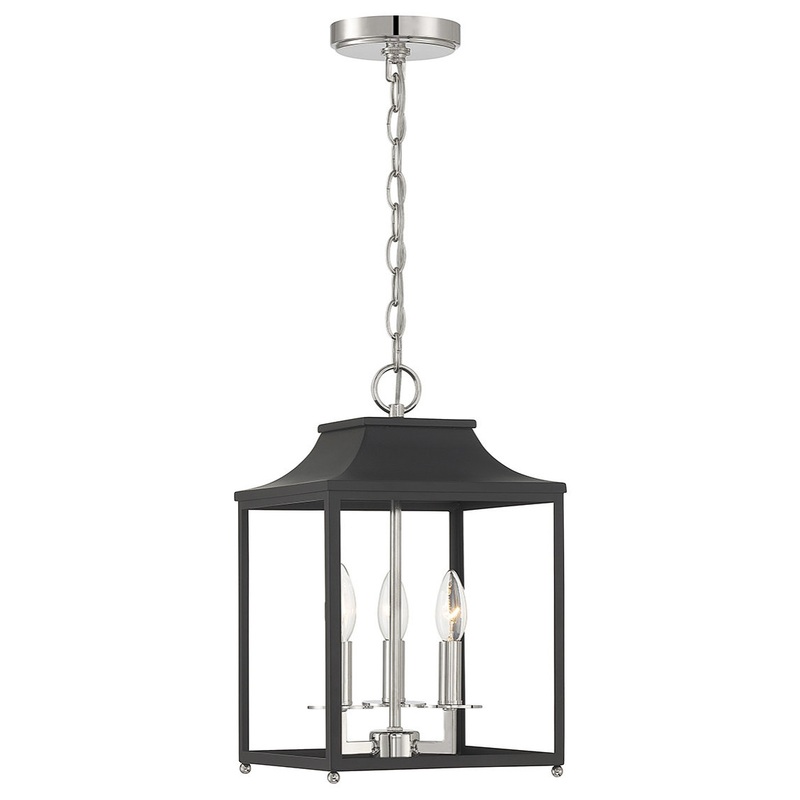 Crisp and traditional lantern style lighting is given an update in this 3-light pendant, which features a matte black finish accentuated by polished nickel. 16" height and 10" width. Max 60 watts per bulb, candelabra size C11 bulbs recommended. LED bulb co