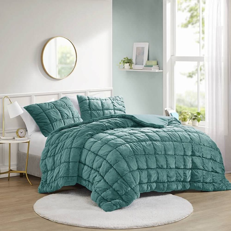 Fall into the plush softness of the puffy velvet comforter set, a perfect addition to your bedroom or dorm room. Featuring down alternative fill and an end-to-end box quilting design to prevent fill from shifting, this lofty midweight comforter is perfect