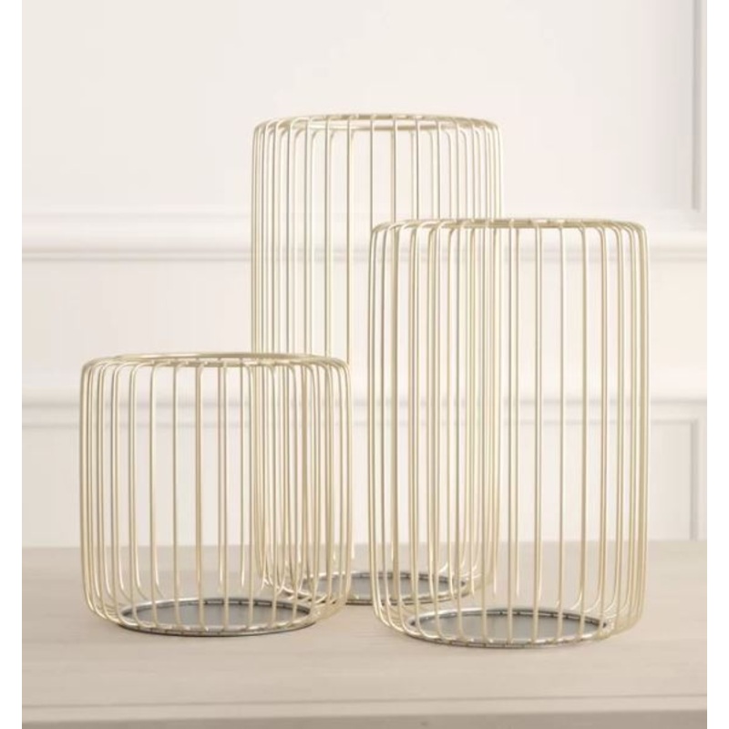Delight your guests and make any occasion extra special by adding a lighted or flameless candle to this lantern. Made with a sturdy base, it is perfect for creating an elegant atmosphere at your table top or mantel. Display as standalone or as set candleholders on your console, coffee, or dining tables. Designed with black rubber stoppers at the base that prevent scratching furniture and table tops, as well as sliding around. Lantern candle holder which can hold 3 candles. This item ships in 1 carton. Suitable for indoor use only. Made in India. Each set comes with 3 candleholders, candle not included. Modern Design.FeaturesModern style inspired with a minimalist design with clean lines and angular structuresThis candleholder set is crafted with solid ironEach highlights a metallic silver overall finishThese candleholders are designed with flaunted railings for a minimalist lookEach item in this set measures 7″ D x 11″ H, 6″ D x 9″ H, and 6″ W x 6″ H and collectively weighs 4 lbs.It accentuates a rounded form with flat top and bottomWipe clean with a dry clothFeatures a metal candle plate attached to the frameEach item in this set measures 7″ D x 11″ H, 6″ D x 9″ H, and 6″ W x 6″ H and collectively weighs 4 lbs.Product DetailsHolder Material: MetalCandle Included: NoCandle Compatibility: Votive/TealightPricket: No