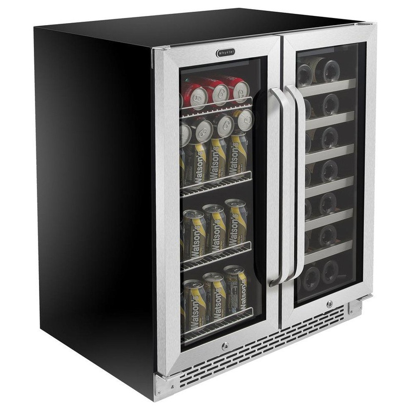 Store Your Favorite Beverages With Style In This Whynter 30 Built-In French Door Dual Zone Wine Refrigerator And Beverage Center. It Holds 88 Standard 12 Oz Cans In Its Left Zone, And 33 Standard 750 Ml Wine Bottles In Its Right Zone, Making It Perfect For Casual Parties, Dinners, Or Any Other At-Home Beverage Needs.The Sleek Black Design Makes This An Elegant Piece Of Furniture In Any Dining Room, Living Room, Or Basement, And Your Drinks Are Easily Accessible Through 4 Removable Pull-Out Sliding Wire Shelves In The Left Zone, And 6 In The Right Zone. With The Automatic Interior Light, The Tempered Glass Door, And The Separate Temperature And Storage Zones, This Is An Stylish And Functional Product For Storing All Types Of Sodas, Energy Drinks, Beers, Wines, And More.Built-In Or Freestanding CapableFront Ventilation Allows For Flush-With-Cabinetry Or Under Counter Installation While The Fully Finished Black Cabinet Allows For Freestanding Use.Dual Zone CoolingKeep Both Beverage Cans And Wines Bottles At Their Optimum Temperatures Using Beverage CoolerS Dual Zone Operation And Comprehensive Temperature Range Of 40- 72F And 36- 43F And Respectively.Uv ProtectionPrevent Sun-Inflicted Deterioration Of Wines With The Protective Coated Tempered Double Pane Glass Door, Designed To Let You And Your Guests View Your Collection While Protecting The Wine From Harmful Uv Rays.Safety LocksSecure Your Beverage And Wine Collection With The Built-In Door Locks And Key Set.Temperature Memory FunctionIn The Event Of A Power Interruption, The Refrigerator Will Revert To The Previous Temperature Settings.