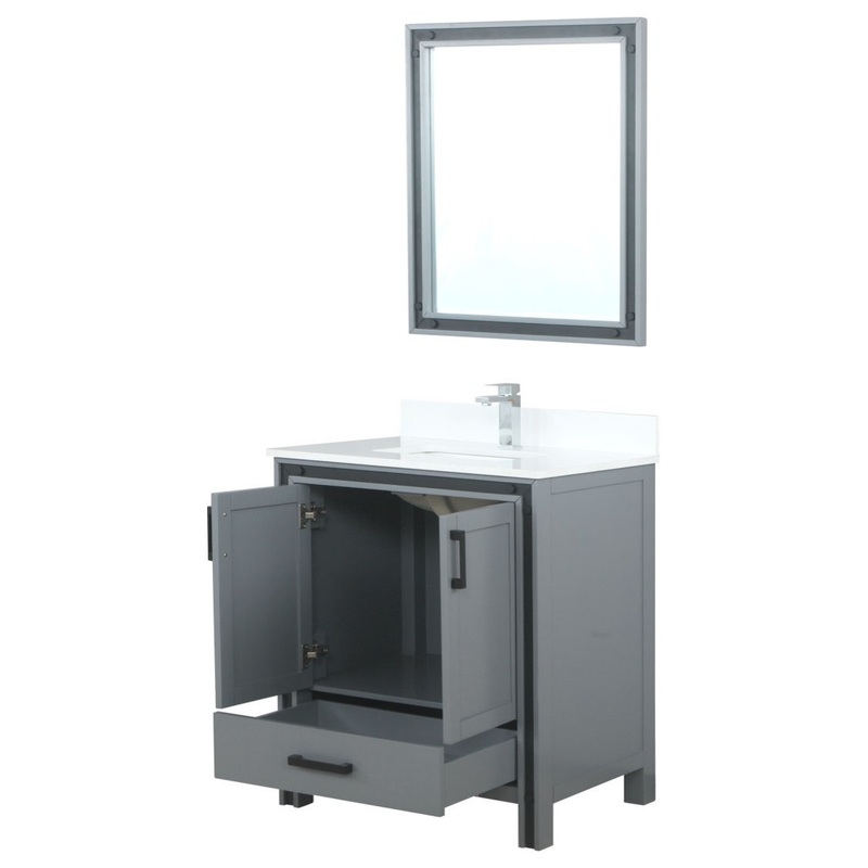 Ziva 30" Dark Grey Single Vanity, Cultured Marble Top, White Square Sink and 28" MirrorThe Ziva vanity in dark grey from Lexora provides a beautiful, contemporary style to any bathroom. With sleek, clean lines and a cool, neutral finish, this vanity's beau