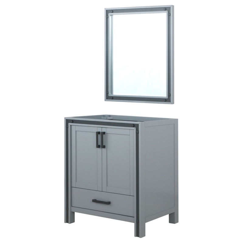 Ziva 30" Dark Grey Single Vanity, no Top and 28" Mirror The Ziva vanity in dark grey from Lexora provides a beautiful, contemporary style to any bathroom. With sleek, clean lines and a cool, neutral finish, this vanity's beauty is only matched by its seaml