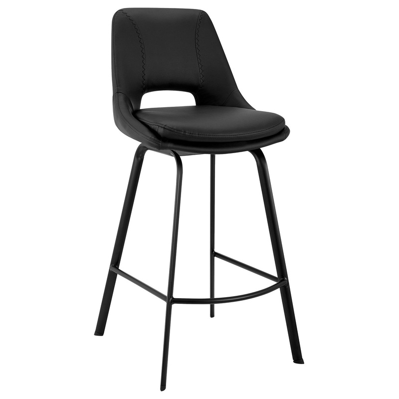 Beyond being a good piece of furniture, this 30″ Elegant Black Faux Leather and Black Metal Armless Swivel Bar Stool is a classic piece of art. Place this stool anywhere in your home and enjoy an update of class, style, and comfort to any existing decor you might already have in there. This elegant stool is an excellent way to enjoy both practicality and design, with its 180-degree swivel effect a perfect example of how you can enjoy the former while the soft foam padding in soft faux leather upholstery example of what the latter truly means. The ergonomic modern armless seat design has a oval opening in the backrest that adds breathability and visual interest to the seat. The structure rests on a metal frame that features a convenient footrest that provides support for your legs while you’re seated. 41″ x 17″ x 21″
