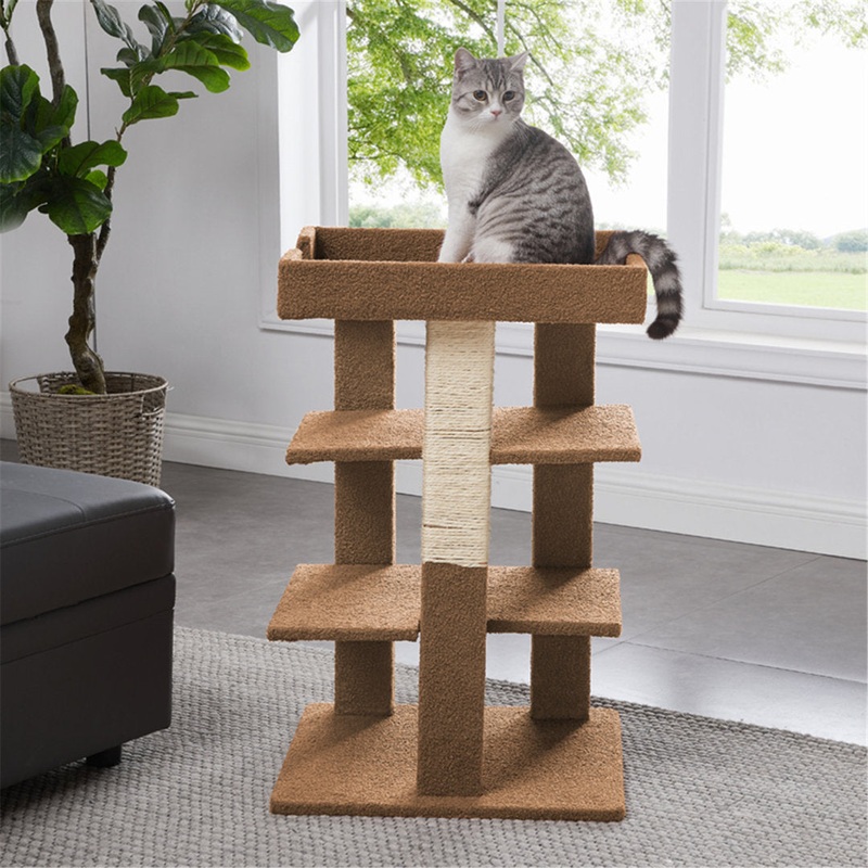 Calling all cat moms & dads,Take a look at our newest cat tower.This product layout is built with three levels and a scratching post for your kitty or kitties to enjoy. With easy care instructions, the only thing you’ll be needing to do is spot clean and vacuum as necessary. Made of wood and household carpet materials. Available in different colors. Tucker Murphy Pet Color: Beige