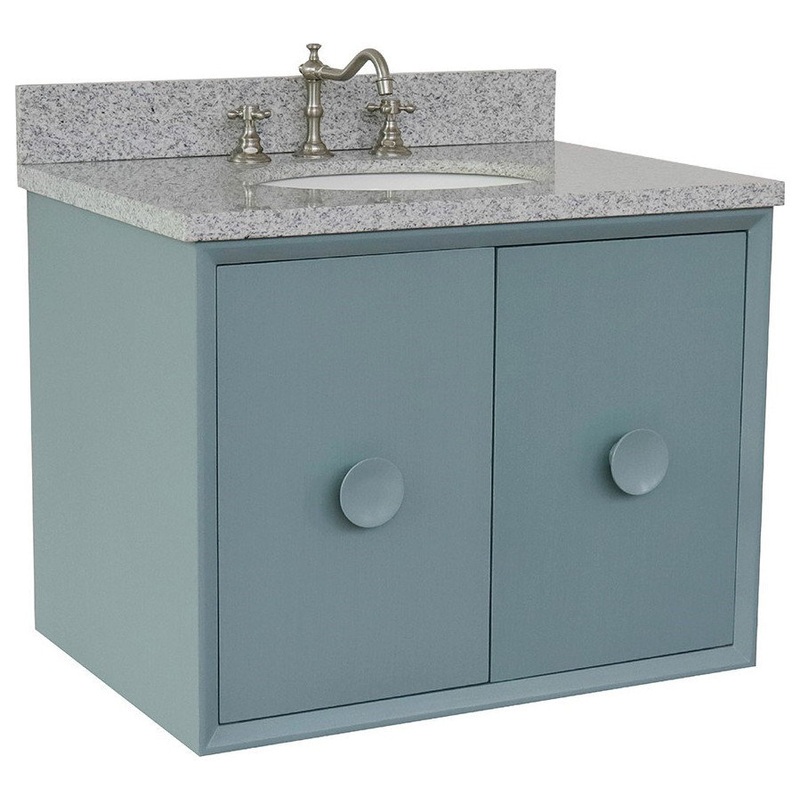 31″ Single Wall Mount Vanity, Aqua Blue Finish With Gray Granite Top – Modern – Bathroom Vanities And Sink Consoles – by Beyond Design & More
