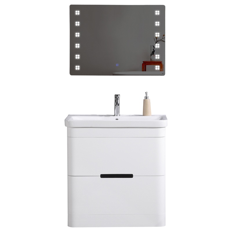 -Dimensions: L:18x W:32 x H:33.5 -Finish: White -Counter Top: Ceramic -Sink: Integrated -Faucet: Not Included -Faucet hole : Single Pre-drilled hole -Mirror: LED Mirror Included -Mirror Dimensions: L:32 x H:24 -Vanity Material: PVC -Water Sealer: Water Res
