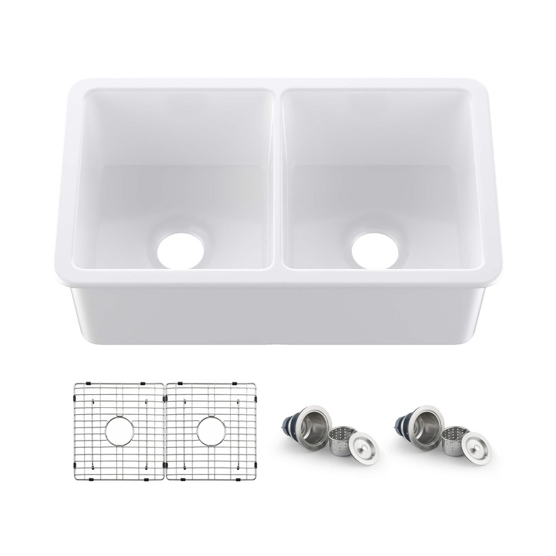 32″ Pure Fireclay Double Bowl Undermount Kitchen Sink – Contemporary – Kitchen Sinks – by Kibi USA
