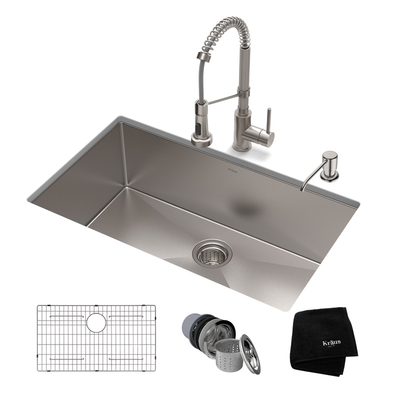Kitchen Combo included: Kitchen Sink and Kitchen Faucet with Matching Soap Dispenser Enjoy the advantage of high-end kitchen sinks without the high price tag with the best-selling Standart PRO Series by KRAUS. This Kraus sink features industrial-grade corr