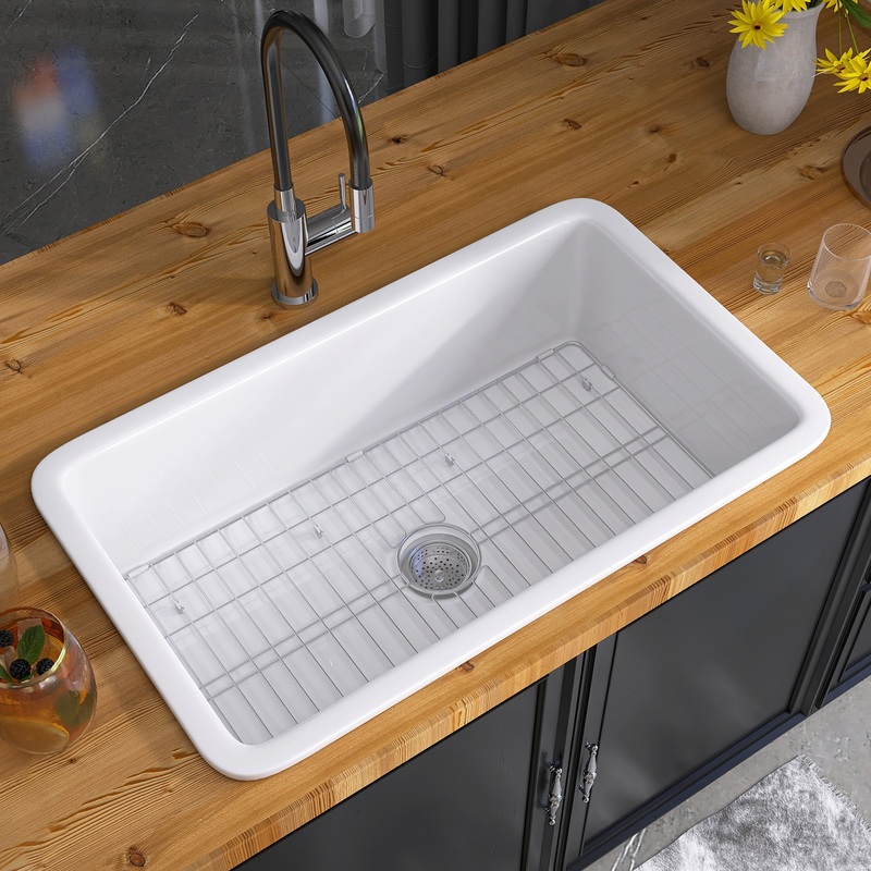 100% TRUE Fireclay and Italian GlazeGETPRO white kitchen sink made from 100% true fine fireclay. Ultra-fine fireclay is the most durable material for high-quality undermount kitchen sinks. It makes GETPRO drop in kitchen sink 32 inch extremely durable and