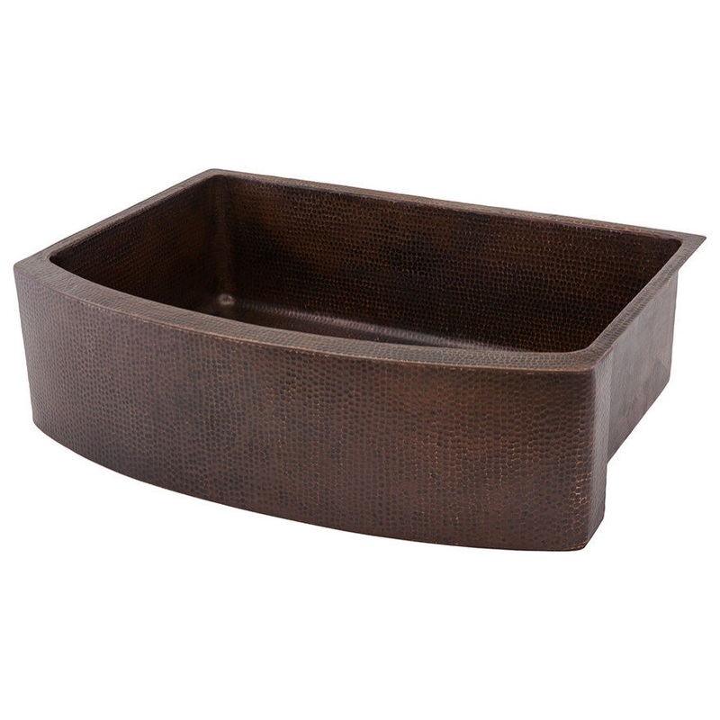 33″ Hammered Copper Rounded Apron Front Single Basin Kitchen Sink Features: