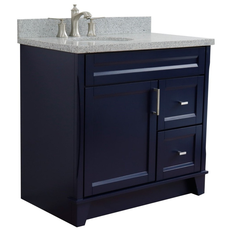 37″ Single Sink Vanity, Blue Finish With Gray Granite And Left Door/Left Sink – Transitional – Bathroom Vanities And Sink Consoles – by Bellaterra Home-400700-37L-BU-GYOL
