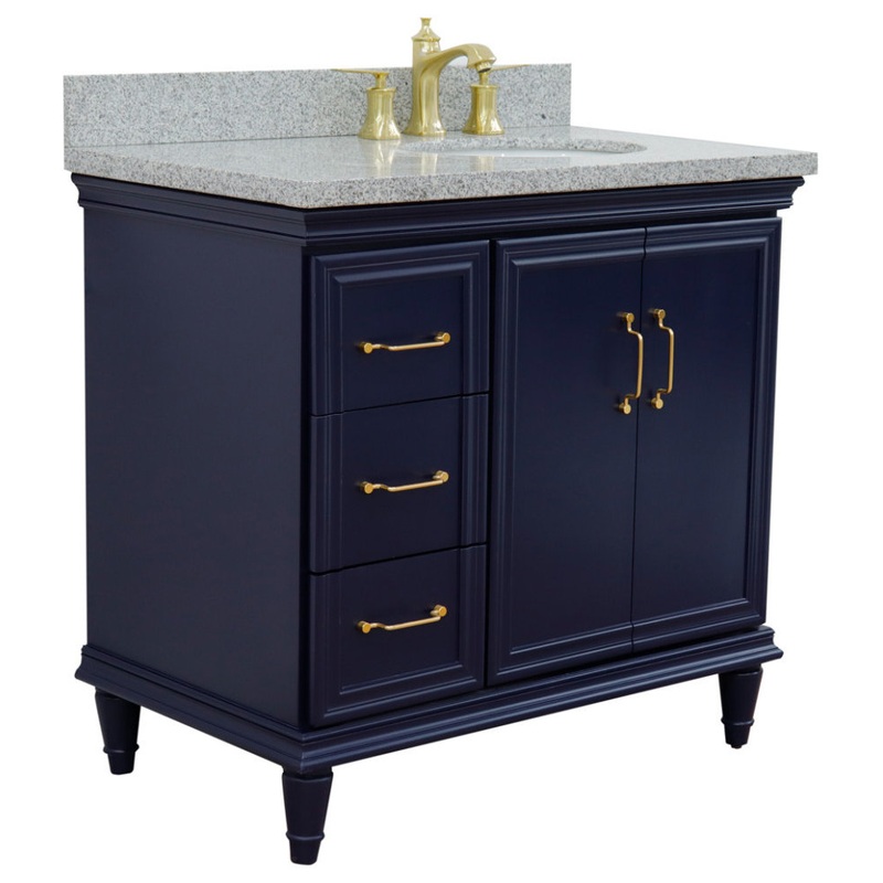 37″ Single Vanity, Blue Finish With Gray Granite – Transitional – Bathroom Vanities And Sink Consoles – by Bellaterra Home-400800-37R-BU-GYOR