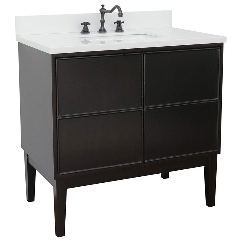 The Scandi collection by Bellaterra Home features is a traditional cabinet with a modern twist. It is constructed with solid oak and birch veneer. On all corners, it has full corner block for stability and additional support for the counter top. It is hand applied with multiple layers of ecofriendly stain and top coat to prevent pealing, cracking and fading. The interior finish is consistent throughout and matches the exterior finish. This cabinet offers immaculate styling while concealing a fantastic amount of storage behind a set of doors. The interior drawer is constructed with English dovetail and smooth full extension glide. This collection is offered in two configurations, wall mount or freestanding, and also, a variety of finishes and designs. Each cabinet is configured to work with our variety of countertops or any standard size tops. These elegant bathroom vanity top features a 1.3 in. thick Engineered Stone Top granite preinstalled with a white cUPC certified white ceramic sink and a matching 4 in. H. backsplash is available for purchase to complete the utmost beauty and functionality. It will easily match many home interiors. The vanity top is pre-drilled with 3 holes for a wide spread faucet. Bellaterra Home’s counter tops are pre-sealed and polished for added protection. All genuine stone material has its variation of veining pattern and color; every top will be slightly different.