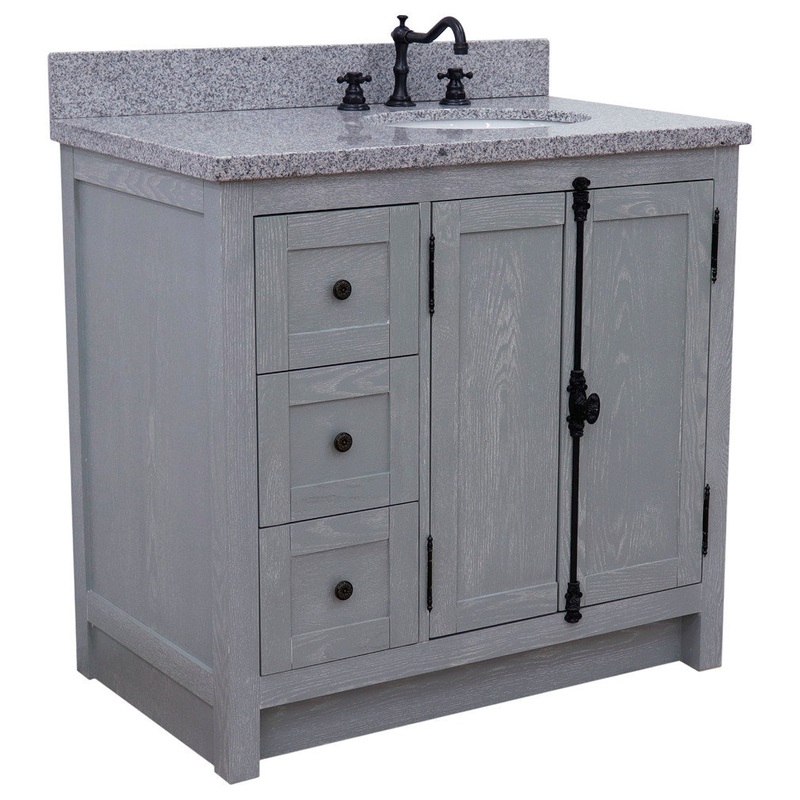 37″ Single Vanity, Gray Ash With Gray Granite Top, Right Doors/Right Oval Sink – Farmhouse – Bathroom Vanities And Sink Consoles – by Bellaterra Home