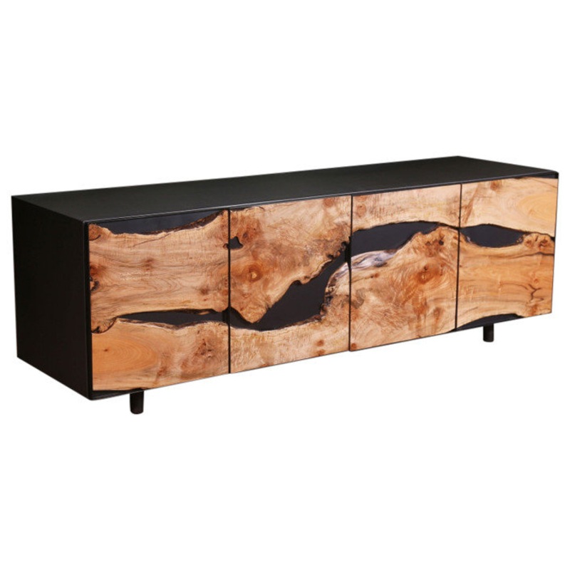 Upgrade your space with the 4-Door Live Edge Credenza. This live edge credenza features a wrap-around, hot rolled steel top, 4 cabinet doors, and 4 live edge adjustable shelves. This stunning credenza is also custom-built and one-of-a-kind. It varies sligh