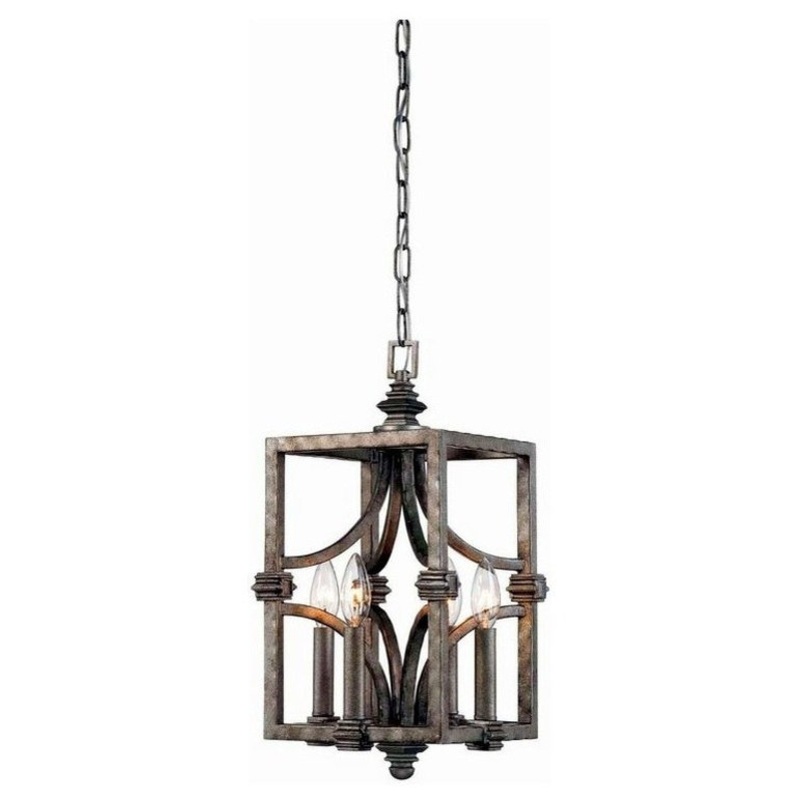 The Structure pendant showcases bold, industrial-inspired style. This light fixture is an impeccable choice for your contemporary, transitional, industrial, urban farmhouse, or loft-inspired decor. The solid, practical, and utilitarian frame, nonetheless sports decorative, nicely detailed, traditional chandelier elements including multi-layered finial, tiered canopy, and metal candle covers. The whole frame has a neutral, aged steel finish, and four 60W, C-style bulbs provide plenty of illumination. This pendant is 9 wide and 16.5 high: ideal for your dining room, kitchen, foyer, living room, office, family room, stairway, bedroom, or great room.