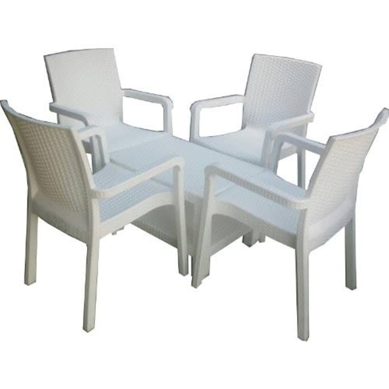 Manufactured fromhigh-quality flat weave poly material, a man-made fibre woven into a rattan style, the collection is lightweight yet sturdy and stackable.