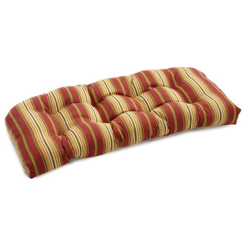 Add a splash of color and style to your home furnishings with this bench cushon. This cushion features a classic tufted design with a premium spun polyester outdoor fabric. Does not come with ties