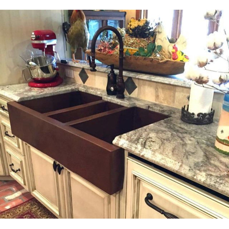 All of our copper farmhouse sinks by SoLuna are hand-hammered in 14 gauge, lead-free copper by 3rd generation coppersmiths. Our 14 gauge copper is the thickest copper available on the marketyou don't need to worry about a metallic drumming sound as water f