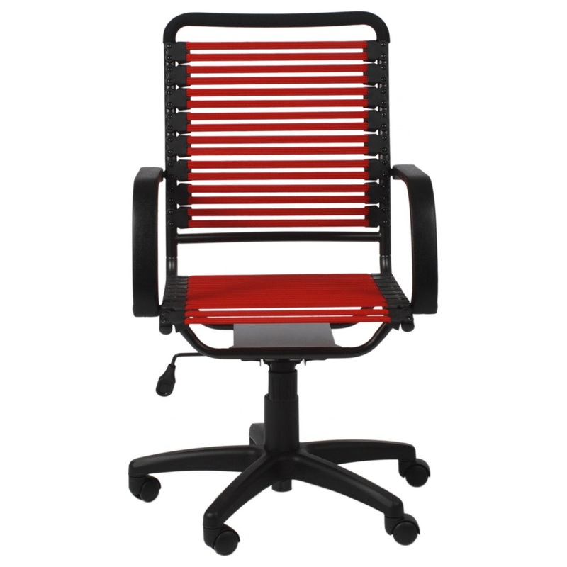 Bring some fun and comfort into the work zone with this Graphite Black and Red Flat Bungee Cord High Back Rolling Office Chair. Designed with a graphite black frame and black base with flat bungie cords for extreme support and ventilation. This chair has a
