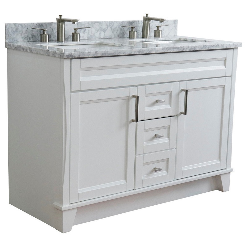 48″ Double Sink Vanity, White Finish With White Carrara Marble – Transitional – Bathroom Vanities And Sink Consoles – by Bellaterra Home