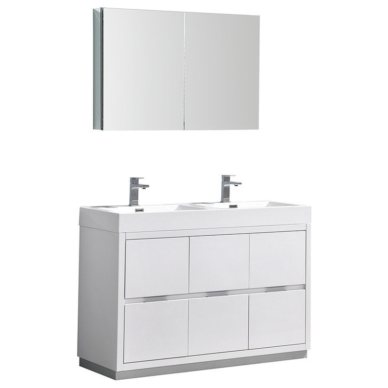 The Fresca Valencia Free Standing Modern Double Sink Bathroom Vanity with Medicine Cabinet comes with everything you need to create an elegant and modern bathroom. The rectangular vanity offers great storage with six soft-closing drawers, just perfect for