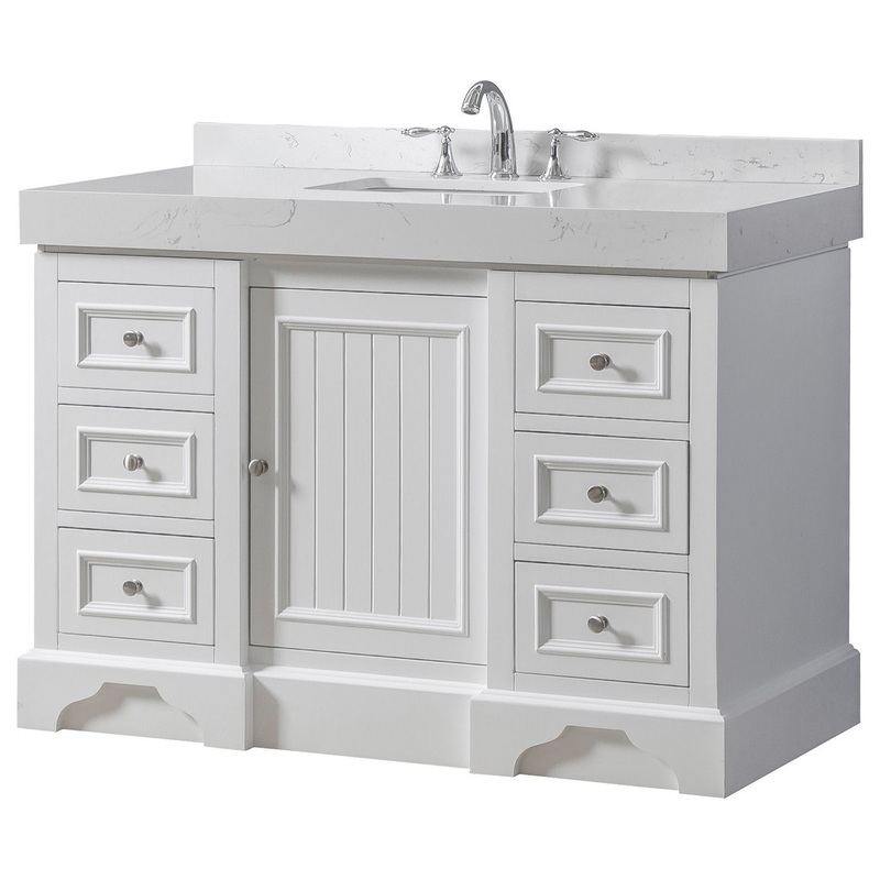 Our Kingswood pearl white vanity sink cabinet collection anchored by beautifully carved base boards provide a grand, classic look. The design of this bathroom vanity set is carried through the entire vanity sink cabinet in the rich paneled doors and drawer