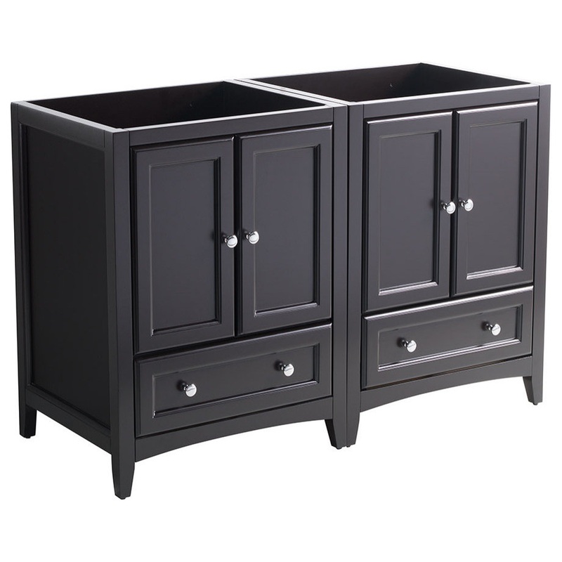 Whether you prefer a modern look or a more traditional style, the Fresca Oxford Traditional Bathroom Cabinets are a great starting point when updating your bathroom. They would blend beautifully with any decor. These shaker style wood cabinets have a rich Espresso finish. Designed to be used with a double sink vanity top, this cabinet combination features doors that open to reveal two roomy storage compartments. To give this piece a unique touch, handy dovetail drawers are positioned along the base of the cabinets, providing additional space. These lovely cabinets feature soft-close mechanism and polished chrome pulls. These particular cabinets are designed to accommodate a countertop that measures 48″ in width.
