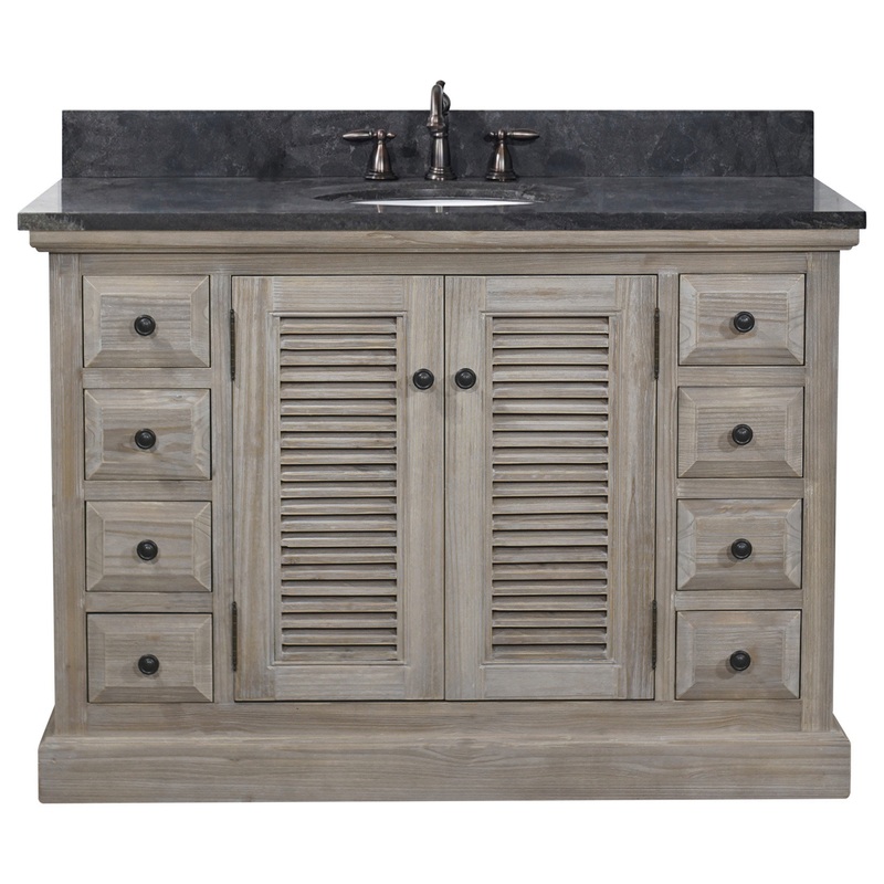 Rustic style vanity in a driftwood finish. Dark limestone top with under mounted ceramic sink. Pre-drilled with 3-holes for 8-inch widespread faucet. Model # (MPN)WK1948 +WK 48 TopProduct ID96337805Manufactured ByinFurniture Inc.,Sold ByHouzzSize/WeightW 4