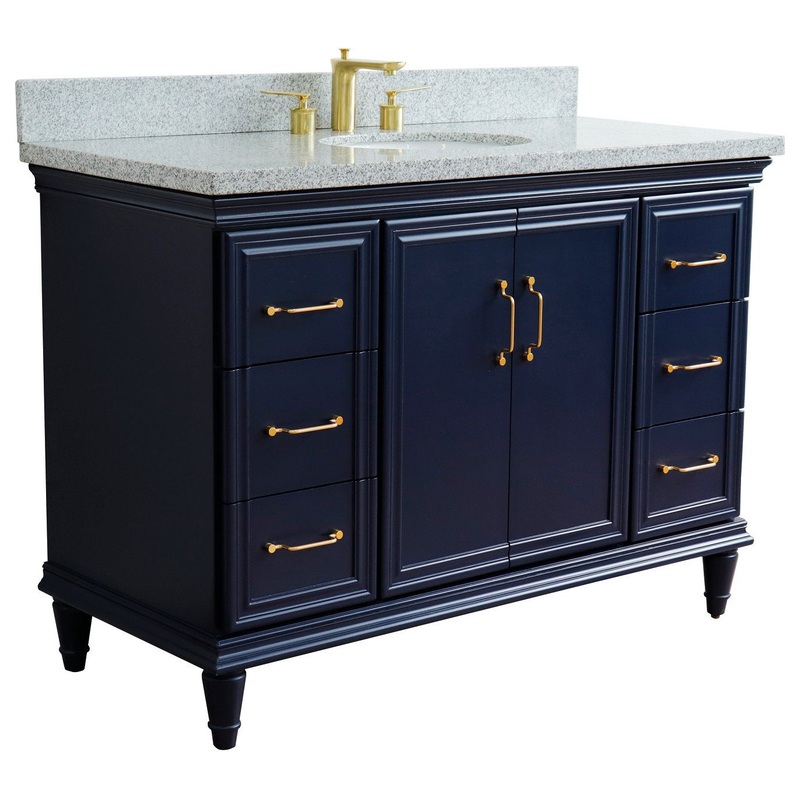 49″ Single Sink Vanity, Blue Finish With Gray Granite and Oval Sink – Transitional – Bathroom Vanities And Sink Consoles – by Bellaterra Home