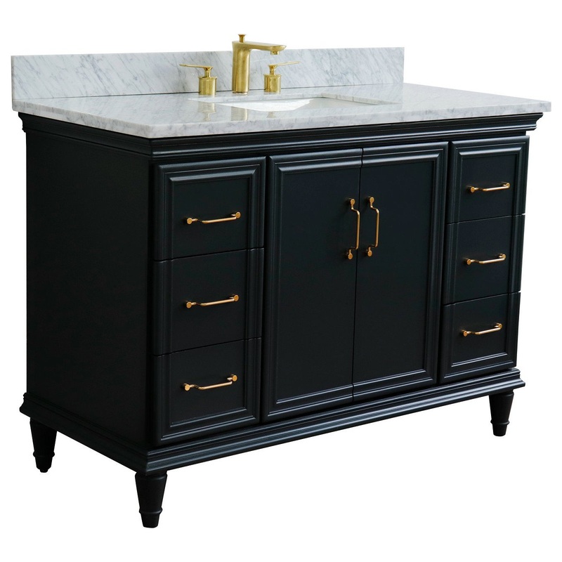 49″ Single Sink Vanity, Dark Gray Finish With White Carrara Marble – Transitional – Bathroom Vanities And Sink Consoles – by Bellaterra Home